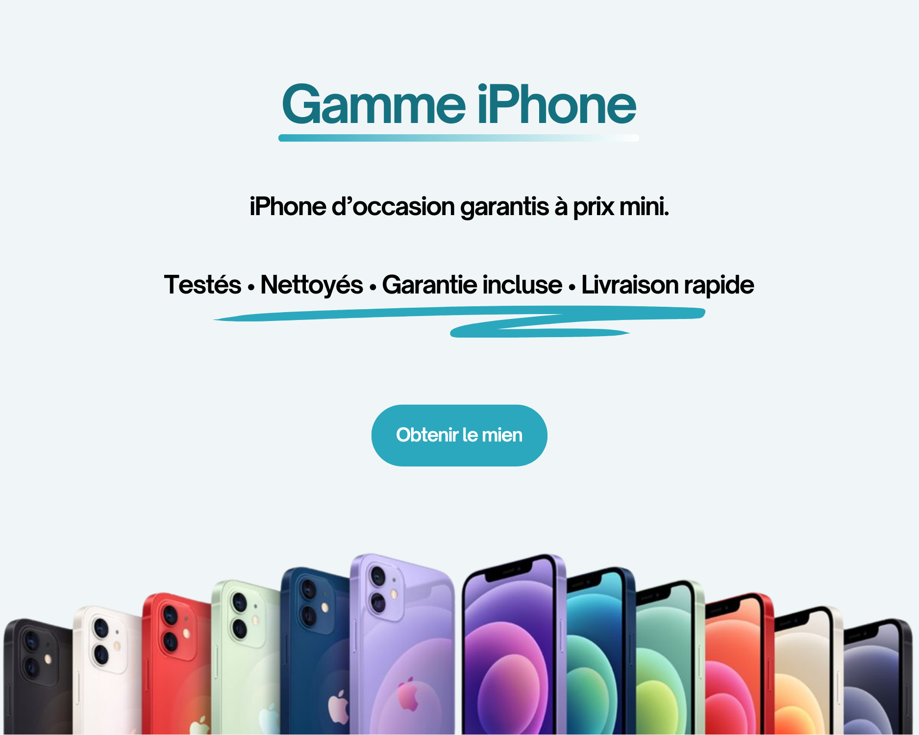 Oui, tous nos produits bénéficient d’une garantie incluse allant jusqu’à 24 mois selon le modèle et l’état choisi. Pour plus de détails, consultez notre page "Garantie" dans le pied de page.